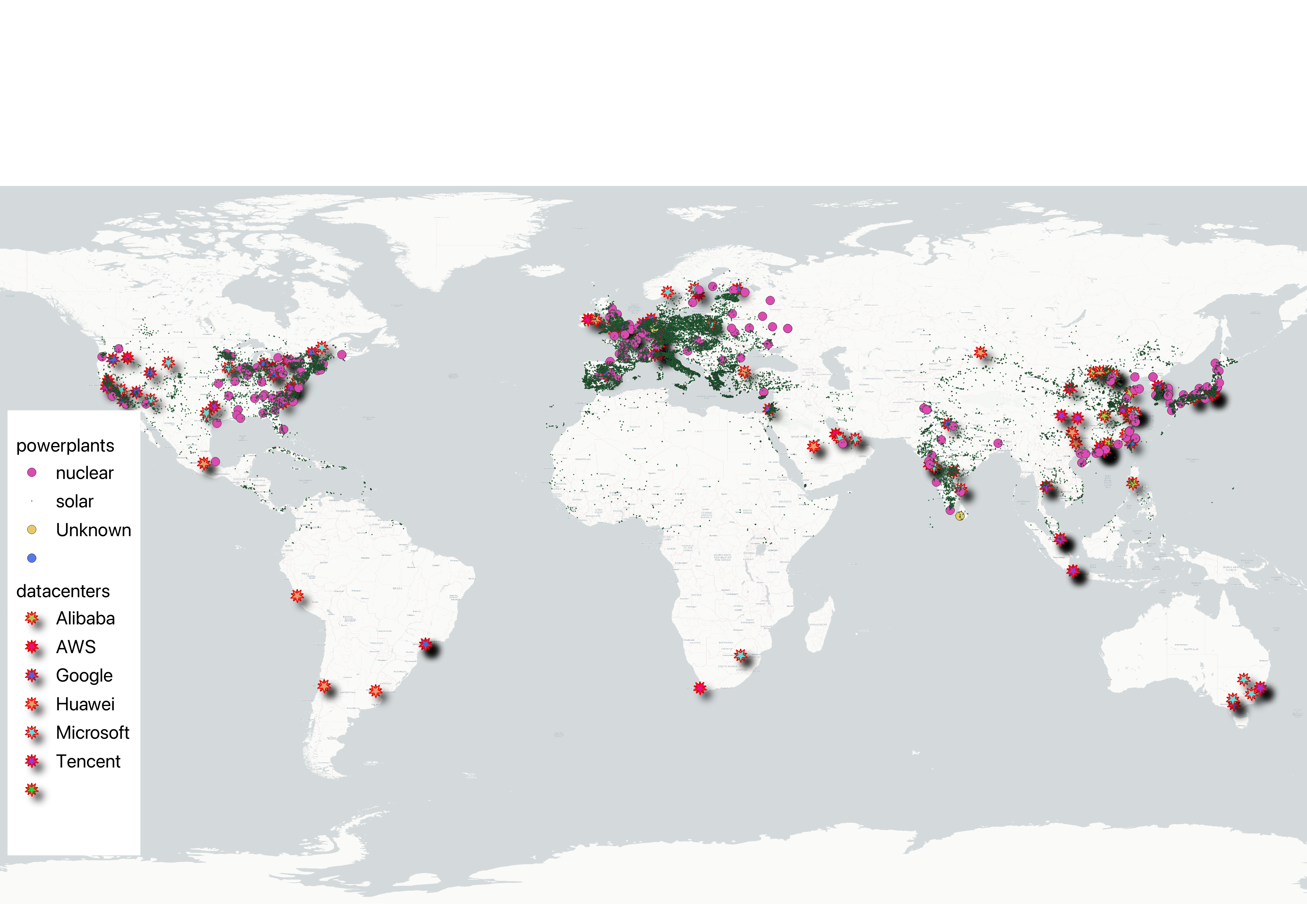 If you map global energy infrastructure, solar installations now blanket the developed world with startling density across North America, Europe, Asia, and increasingly Africa. Hide the solar data and the underlying pattern emerges more clearly: data centers cluster strategically near power sources and urban centers, following the fundamental rule of industrial geography. Overlay the solar data again, and Bostrom’s optimization scenario seems less like science fiction and more like economic inevitability.